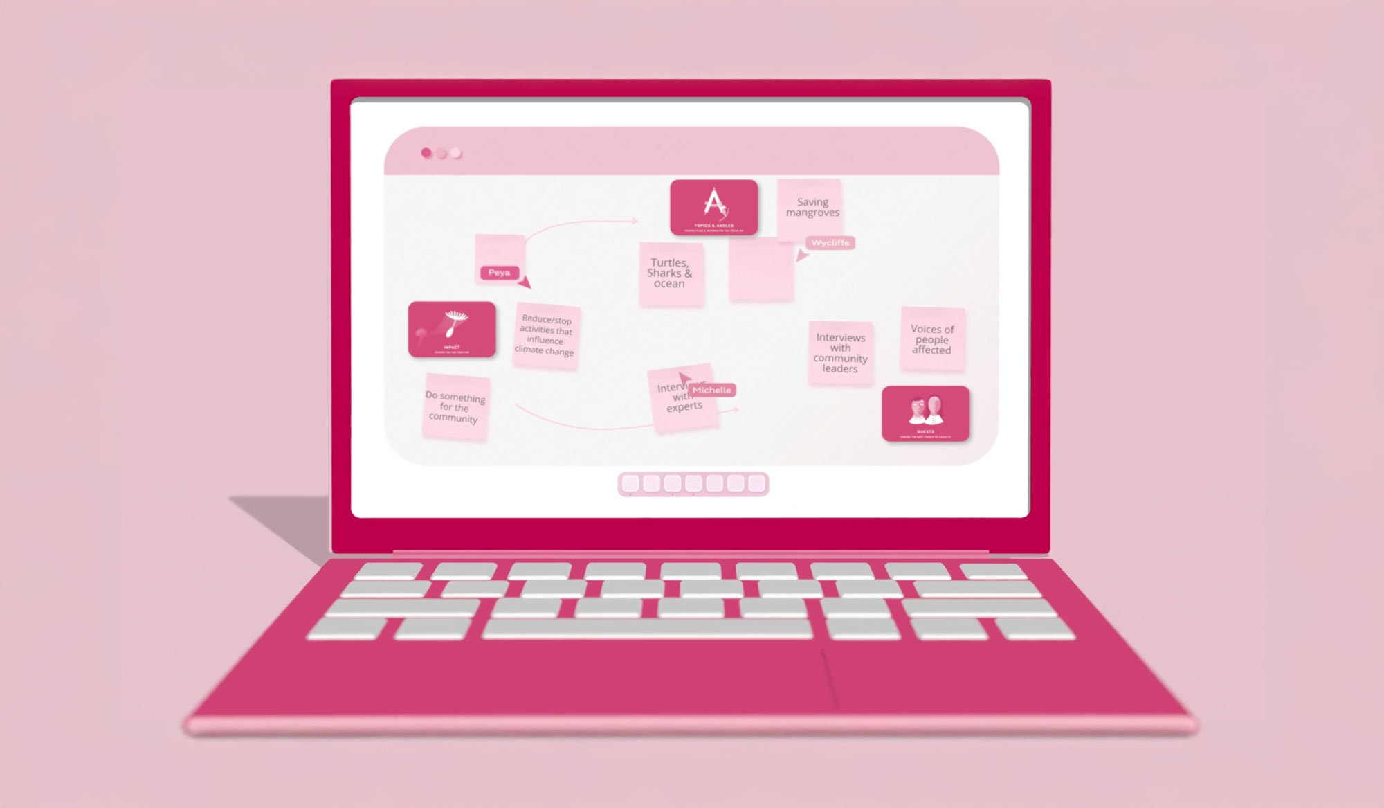 Do customized workshops, explore topics and collaborate online on digital platforms such as Mural and Miro.