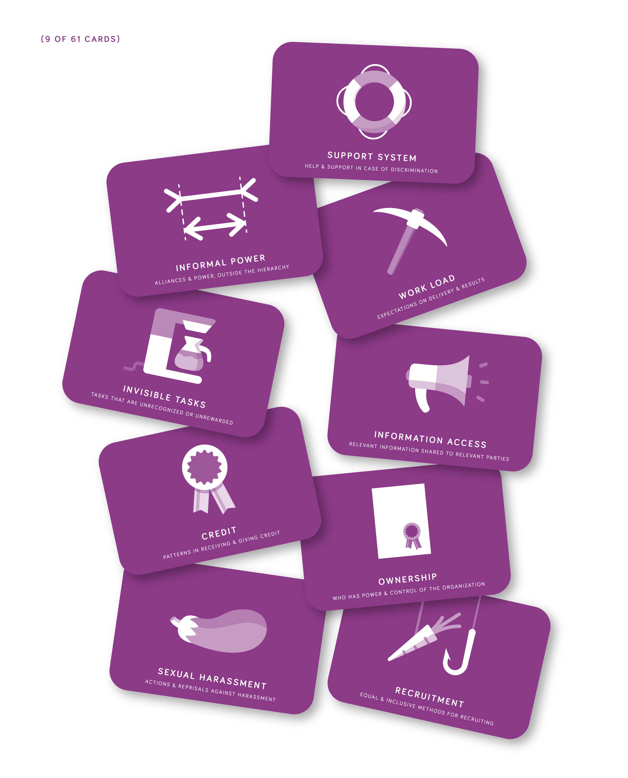 MethodKit for Equality is a deck of cards designed for equality-work in organizations or companies, with focus on gender equality. It is a tool to think with, structure workshops around and to use as a discussion facilitator.